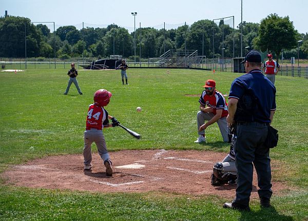 Wie bereits in der Vorwoche, setzte Shahin gleich mit dem ersten Pitch ein Statement und zimmerte das Leder bis kurz vor die Absperrung. Das brachte ihm das zweite Base ein und wenig später durch starkes Laufspiel auch den ersten Punkt. Mats gelang ein Treffer, der sogar noch ein paar Meter weiter flog und das Spielfeld zum Homerun verließ. Zwei gute Schläge, die Segen und Fluch zugleich waren, denn von nun an wollten alle über den Zaun schlagen und das allzu gierige Schlagspiel kam den Gastgebern zugute, die die Flugbälle wegfischten.