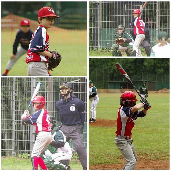 Warum wurden dann zwei Spiele verloren? An dem Punkt muss man leider zugeben, dass die Defense nicht gut gespielt hat. Viele Fehler und Unkonzentriertheiten am jeweiligen Ende der Spiele waren die Gründe für die Niederlagen. Allerdings muss man erneut darauf hinweisen, dass bei hohen Temperaturen wenig Spieler zu Verfügung standen und viele davon positionsfremd aufgestellt werden mussten. Die Coaches sind dennoch zuversichtlich, dass in dieser Saison noch einige Spiele gewonnen werden. Das Potential, speziell bei den neuen Pitchern und Catchern, ist da!